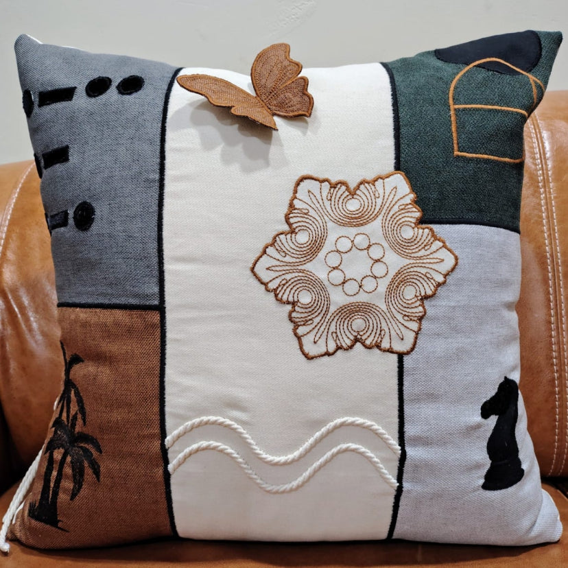 Almofada Xadrez – Coleção Jogos | Gaurê | 50x50cm | Linho, Brim & Veludo Molhado
